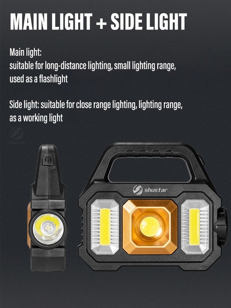 Home > Multi-functional Rechargeable LED Flashlight Work Light Portable Carry Light Solar Charging Support 6 Lighting Modes