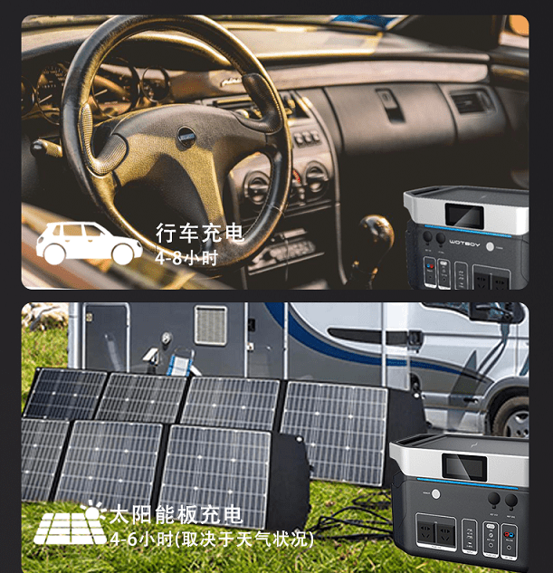 4.400W solar photovoltaic panel charging. According to the midday sun direct sunlight, about 2 hours can be charged with 75% electricity.(The charging time is determined by the light intensity of the sun)